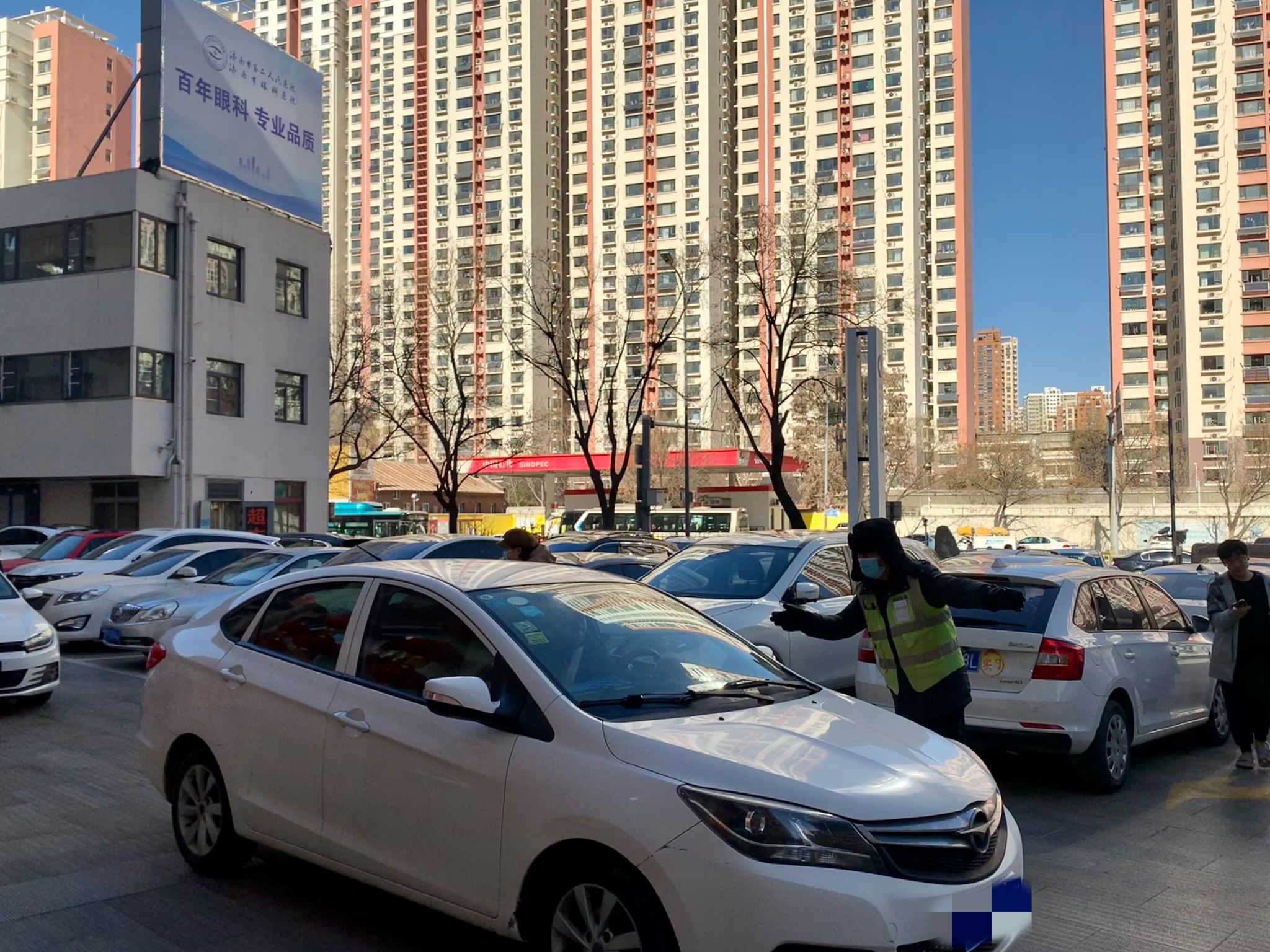 安保人员指挥就诊人员停车