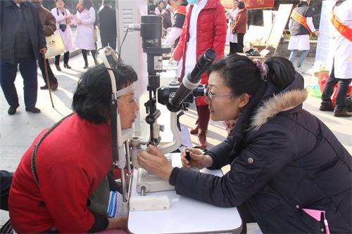 (济南眼科医院)组织医疗团队来到甸柳小区历下文化广场,参加了由市卫计委举办的“服务百姓健康”社区义诊活动。