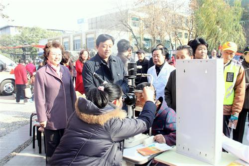 此次,医院选派眼科专家和医护人员六人携带裂隙灯、眼底镜等眼科常用医疗器械开展义诊宣教活动,为群众们送去冬日里的特殊关爱。活动现场寒风料峭,专家们不畏低温,为每位前来就诊的群众仔细检查,详细询问病史,并耐心地回答居民提出的每个问题,让广大群众倍感温暖。