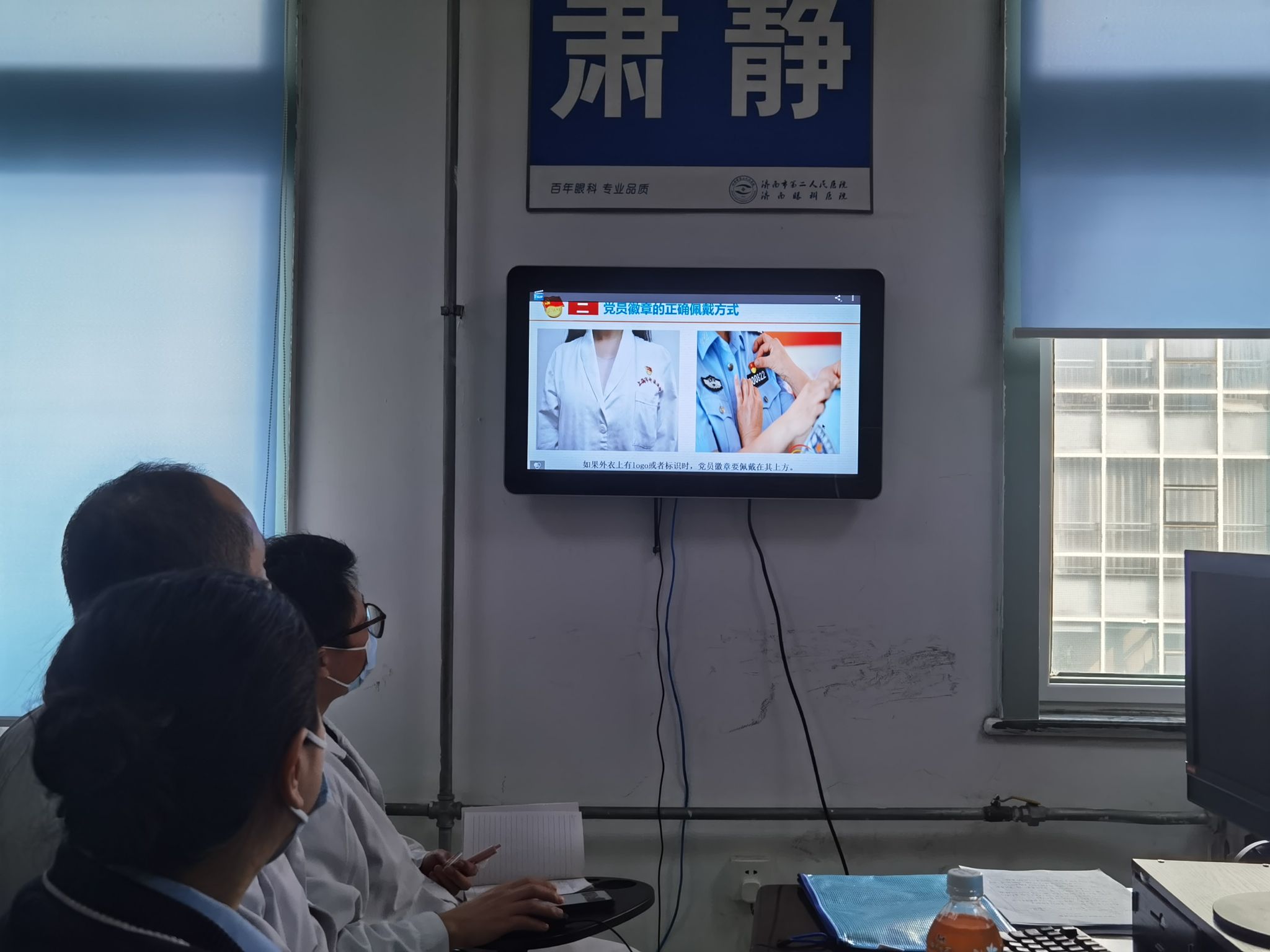 )门诊党支部开展了“规范佩戴党徽,强化党员意识”主题党日活动。