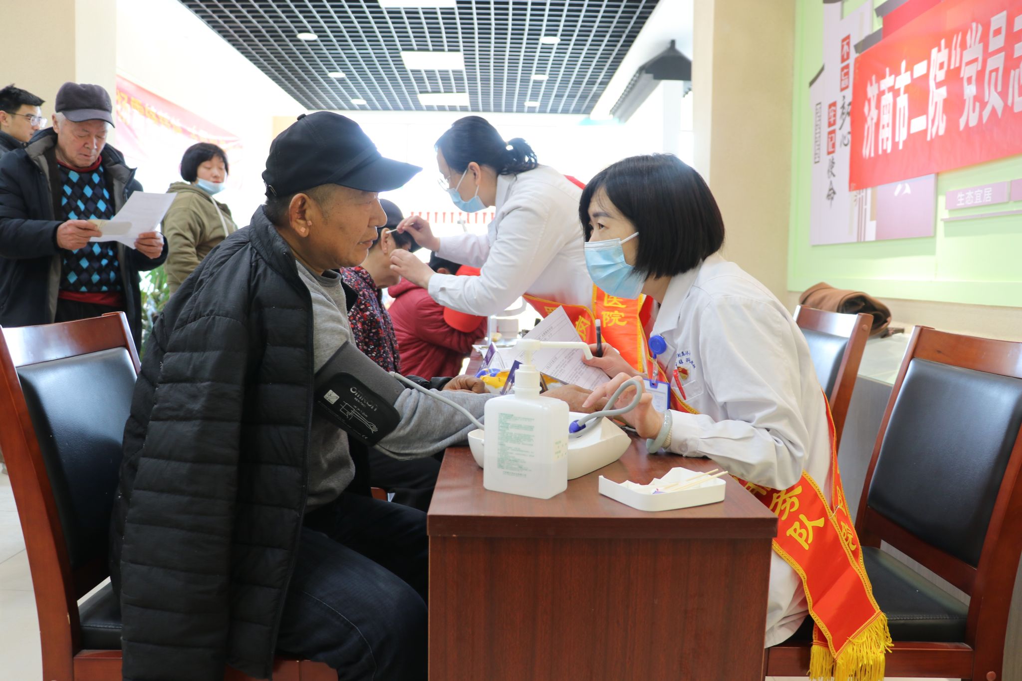 )组织“党员志愿服务队”走进槐荫区玉清湖街道如康家园日间照料中心,开展“学雷锋,送健康”义诊活动,为当地老年人送去温暖和关怀。