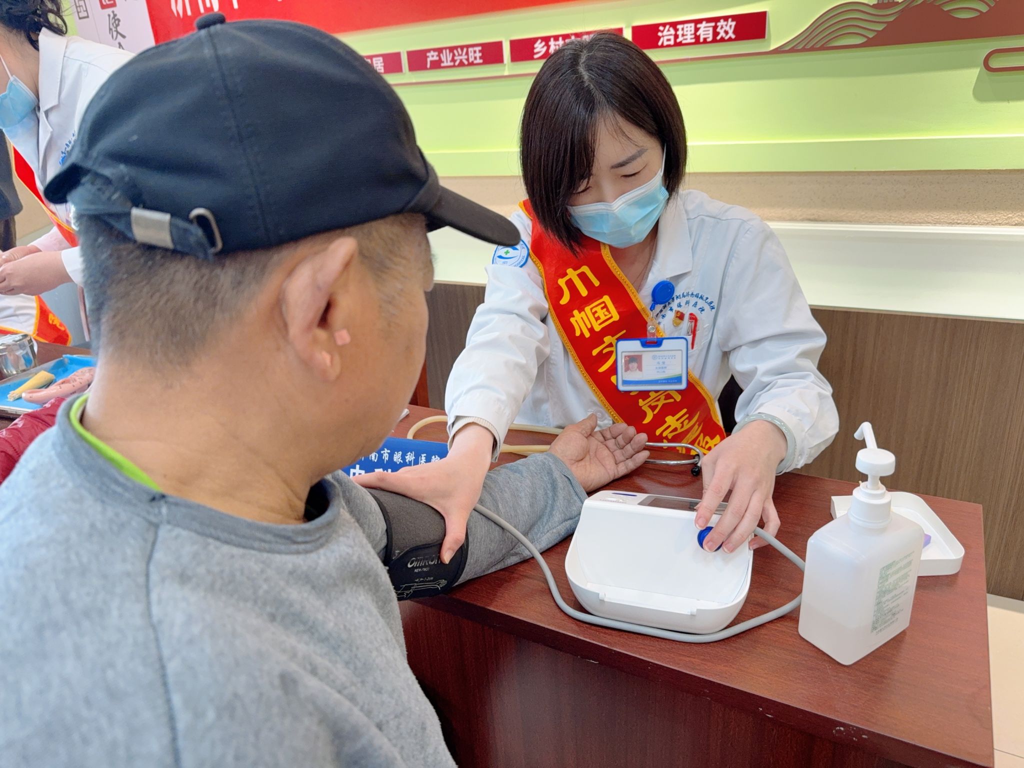 志愿者为村民测血压