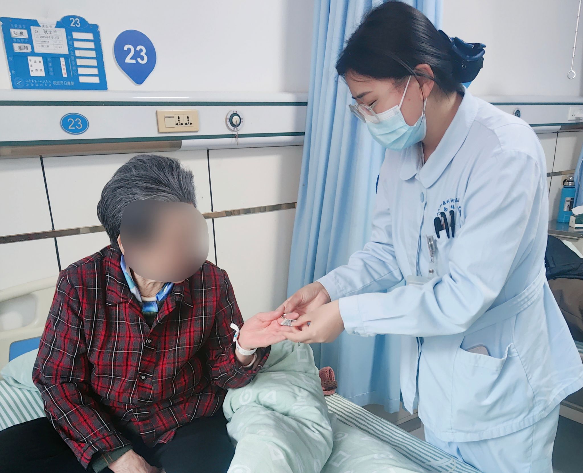护理人员为患者发放钥匙链