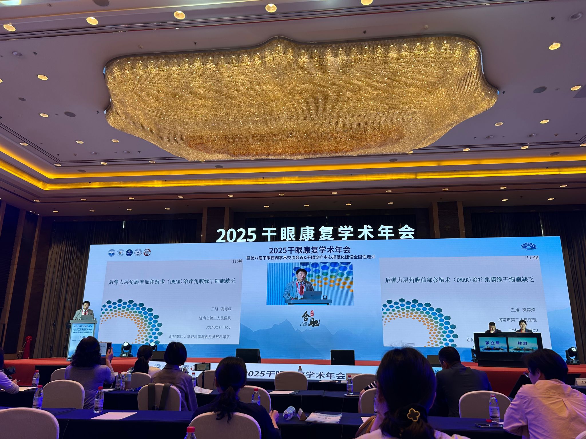 年会现场,王旭教授以《DMAK手术治疗角膜缘干细胞缺乏的研究》为题,详细介绍了后弹力层角膜前部移植术(DMAK)在治疗角膜缘干细胞缺乏中的应用与前景。角膜缘干细胞缺乏是导致干眼症的重要原因之一,传统的治疗方法往往难以取得满意的效果,而DMAK手术通过移植健康的角膜缘干细胞,能够有效恢复角膜表面的正常结构,促进角膜缘干细胞再生,作为一种创新的手术治疗方法,为众多疑难角膜病患者带来了康复的希望。王旭教授的发言的精彩分享见解独到,引起了与会者的浓厚兴趣和高度赞誉。