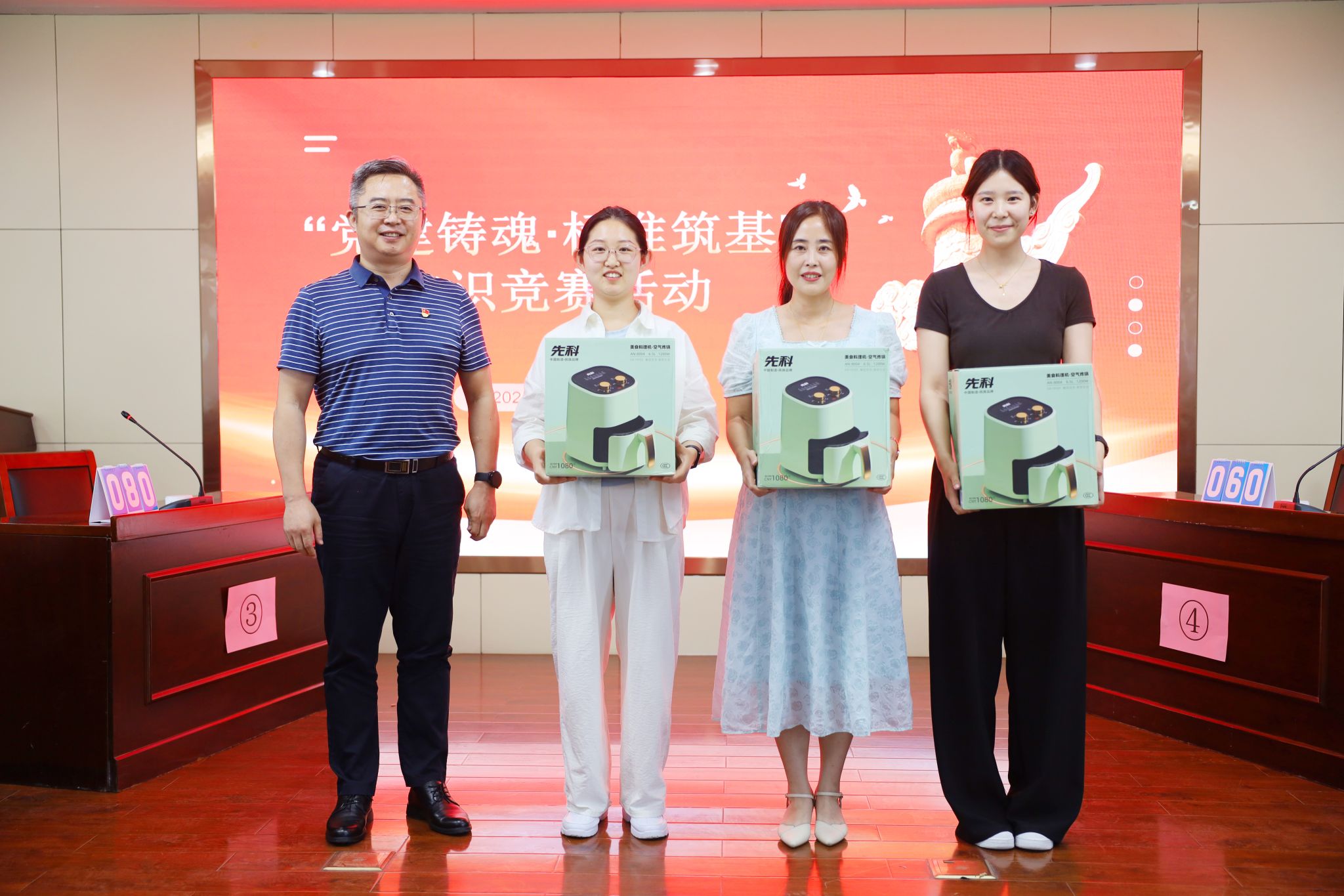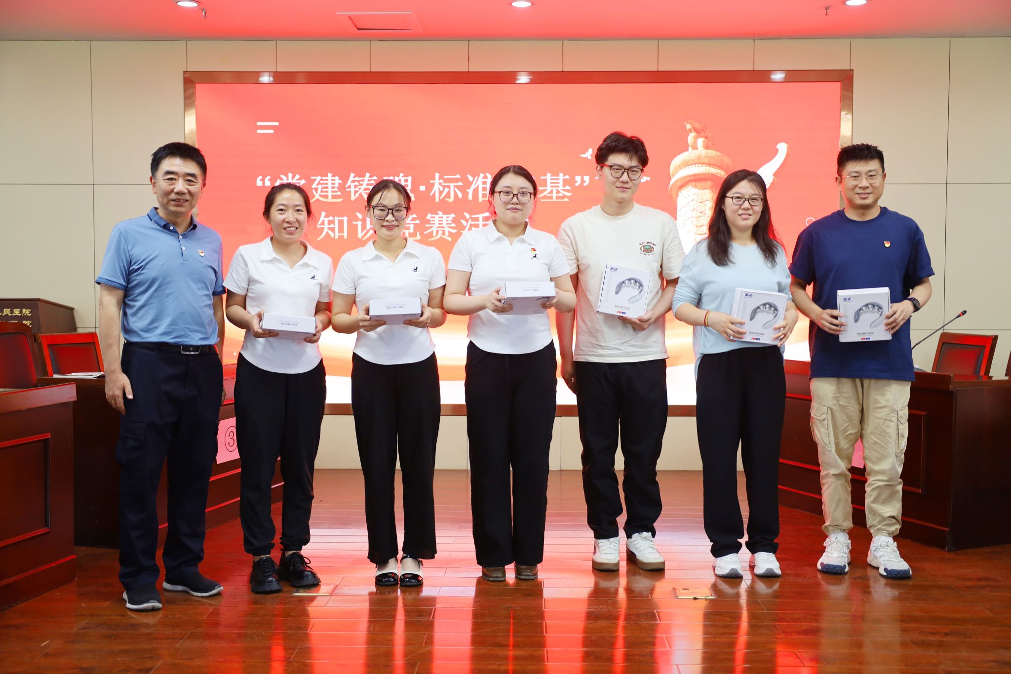 党课结束后,举行了“党建铸魂•标准筑基”知识竞赛。此次竞赛内容涵盖了党建知识、医院标准化建设应知应会与医院文化,旨在通过竞赛形式强化党员、团员对党的历史、医院发展及医疗规范的认知。参赛选手们积极踊跃,答题过程紧张激烈,充分展现了医院职工扎实的知识储备和良好的精神风貌。