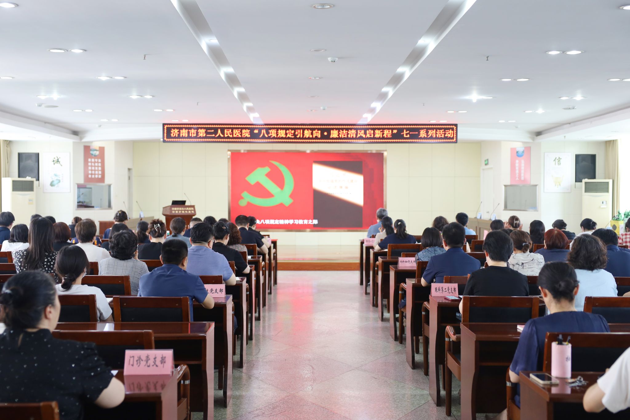 )在门诊病房楼七楼会议室举办了“八项规定引航向•廉洁清风启新程”七一系列活动。医院院领导,中层干部、护士长、党员、入党积极分子及团员共同参与了此次活动。