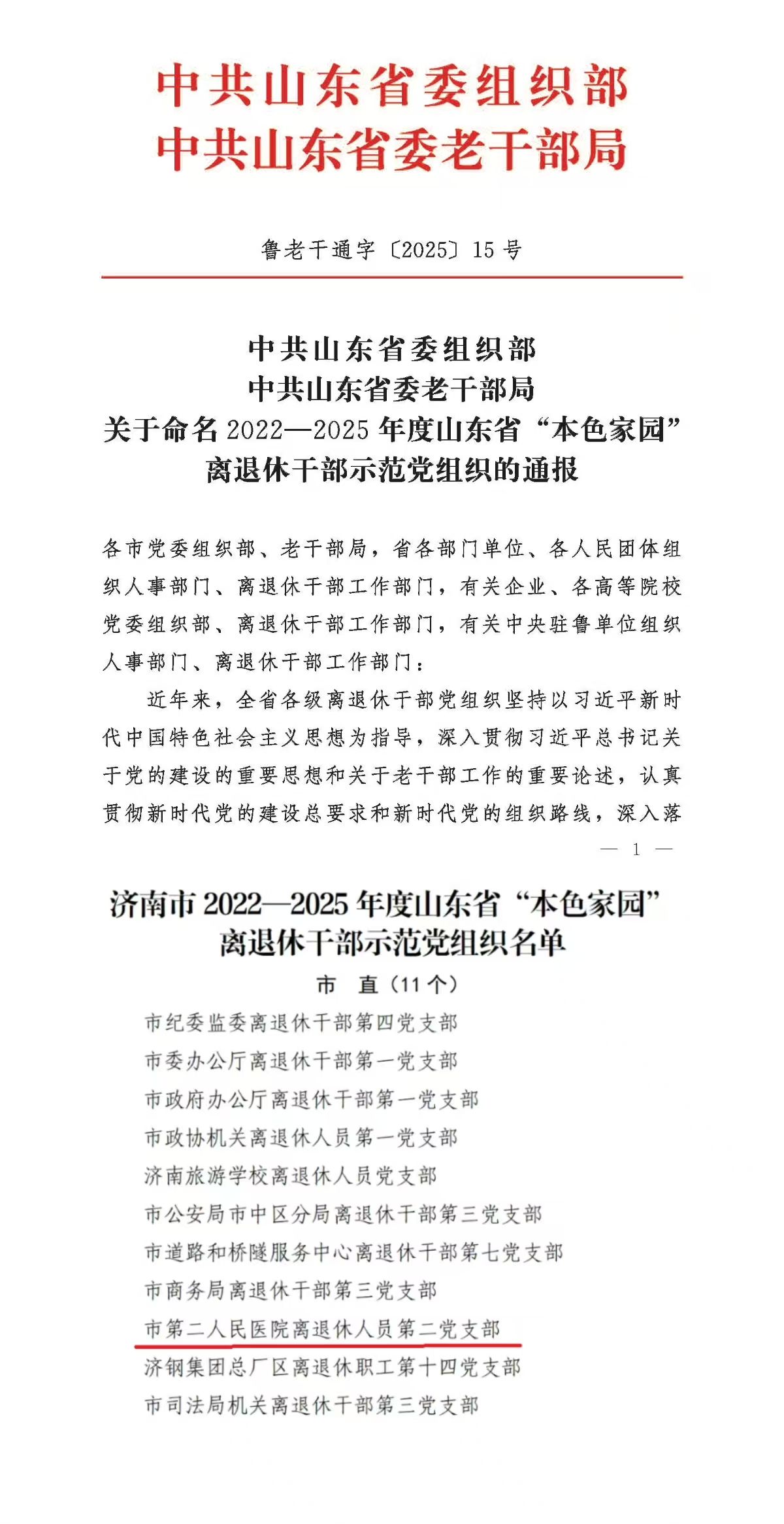 近日,中共山东省委组织部、中共山东省委老干部局联合下发《关于命名2022—2025年度山东省“本色家园”离退休干部示范党组织的通报》,中共黑料网
