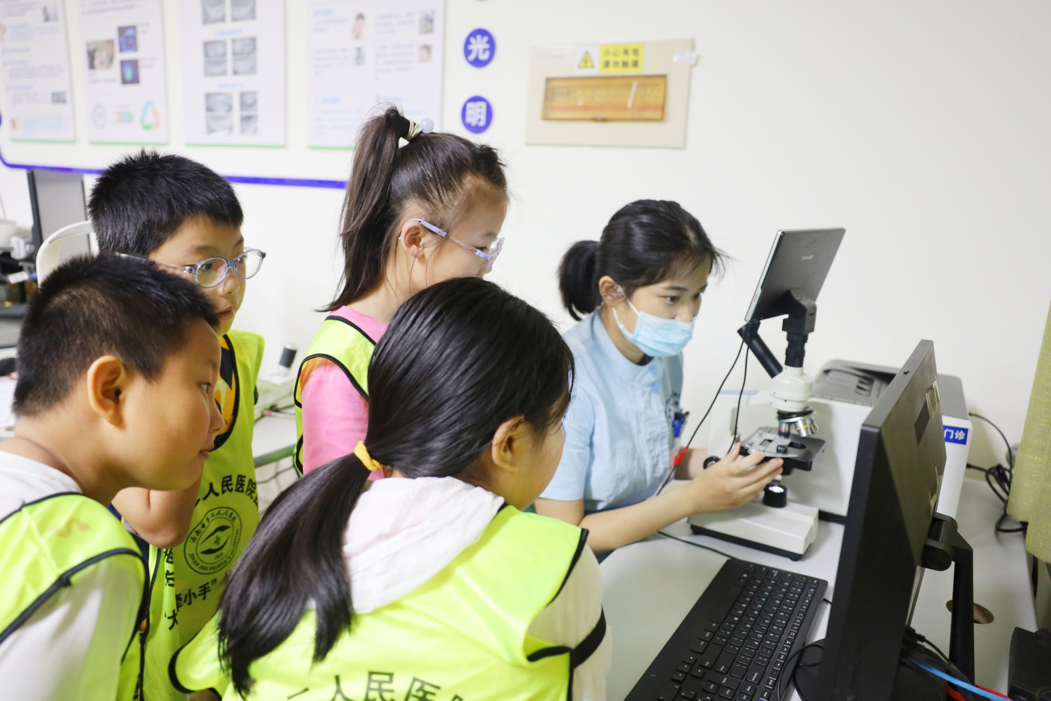 接下来的医学探索之旅与书信文化体验环节更是让孩子们大开眼界。在干眼门诊,孩子们在专业人员的带领下,了解了干眼症的成因与常见检查方法,还在显微镜下观察了蠕形螨,对眼部健康有了更直观的认识。在医院儿童眼病门诊,孩子们分组进行了基础视力检查与验光体验,学会了如何解读简单的验光单。