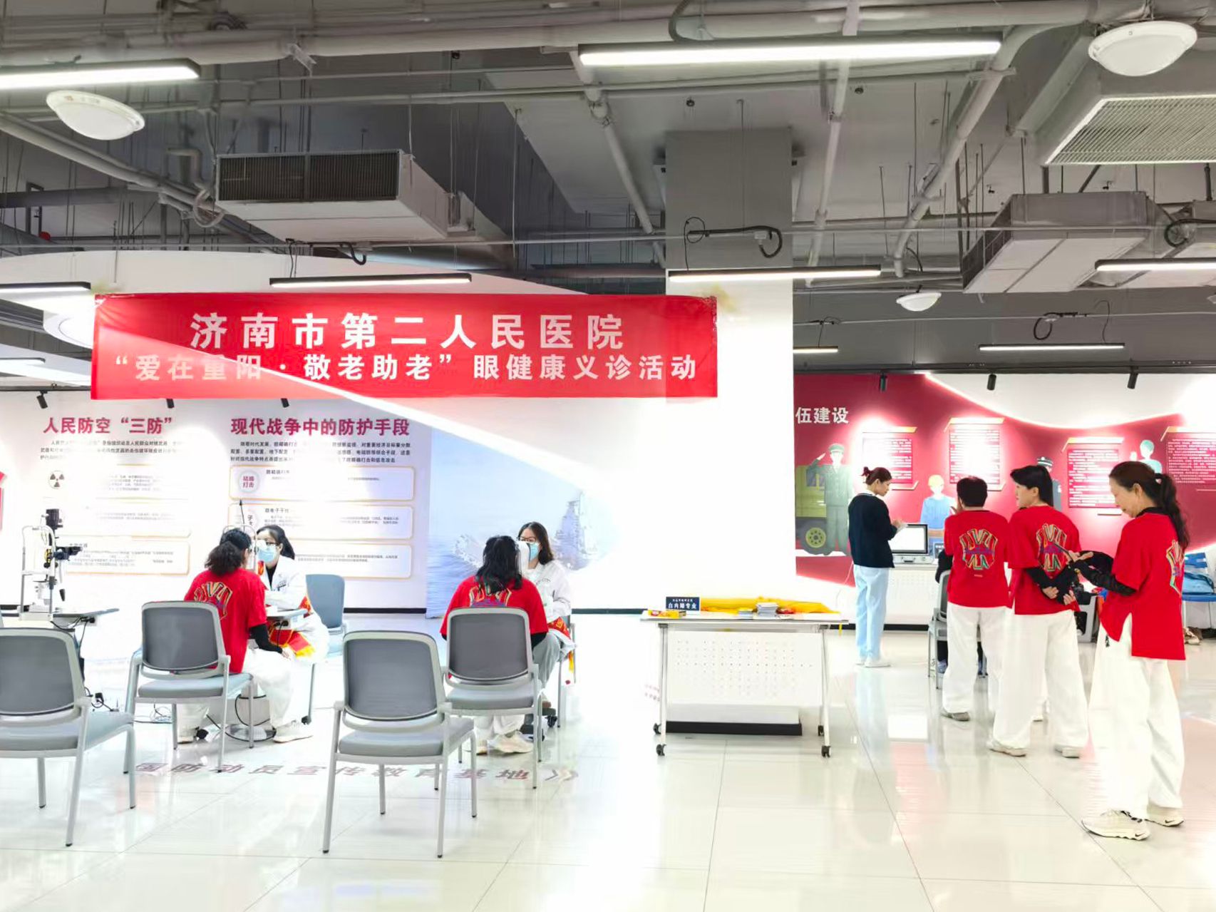 )受邀组织“护颐瞳行”志愿服务队走进济南市槐荫区纬十二路人防商城开展眼健康义诊志愿服务活动,并为参加重阳节汇演的群众送去了专业细致的眼健康服务。