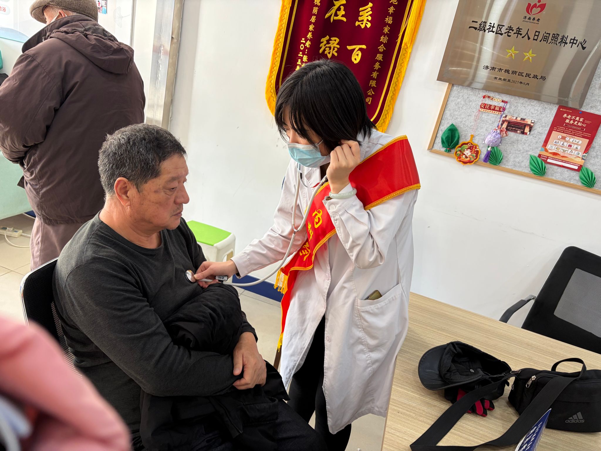 在咨询专区,内科负责人、副主任医师冯莹耐心接待每一位居民,仔细倾听健康诉求,详细询问病史及用药情况。针对居民提出的“慢性病能否停药”“日常饮食如何控制”等疑难问题,她结合个体差异逐一细致解答,量身定制个性化诊疗方案与健康管理建议,用专业实力为居民健康保驾护航 。护士李思洁则在检查区忙碌不停,熟练为居民测量血压、记录数据,对指标异常的居民及时提醒注意事项,叮嘱定期监测复查,同时发放健康宣传资料,普及基础健康知识,用温柔细致的服务赢得居民一致称赞。