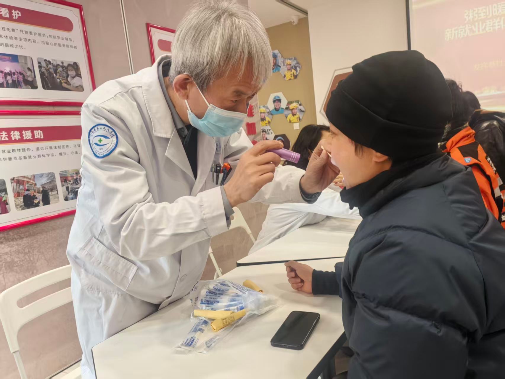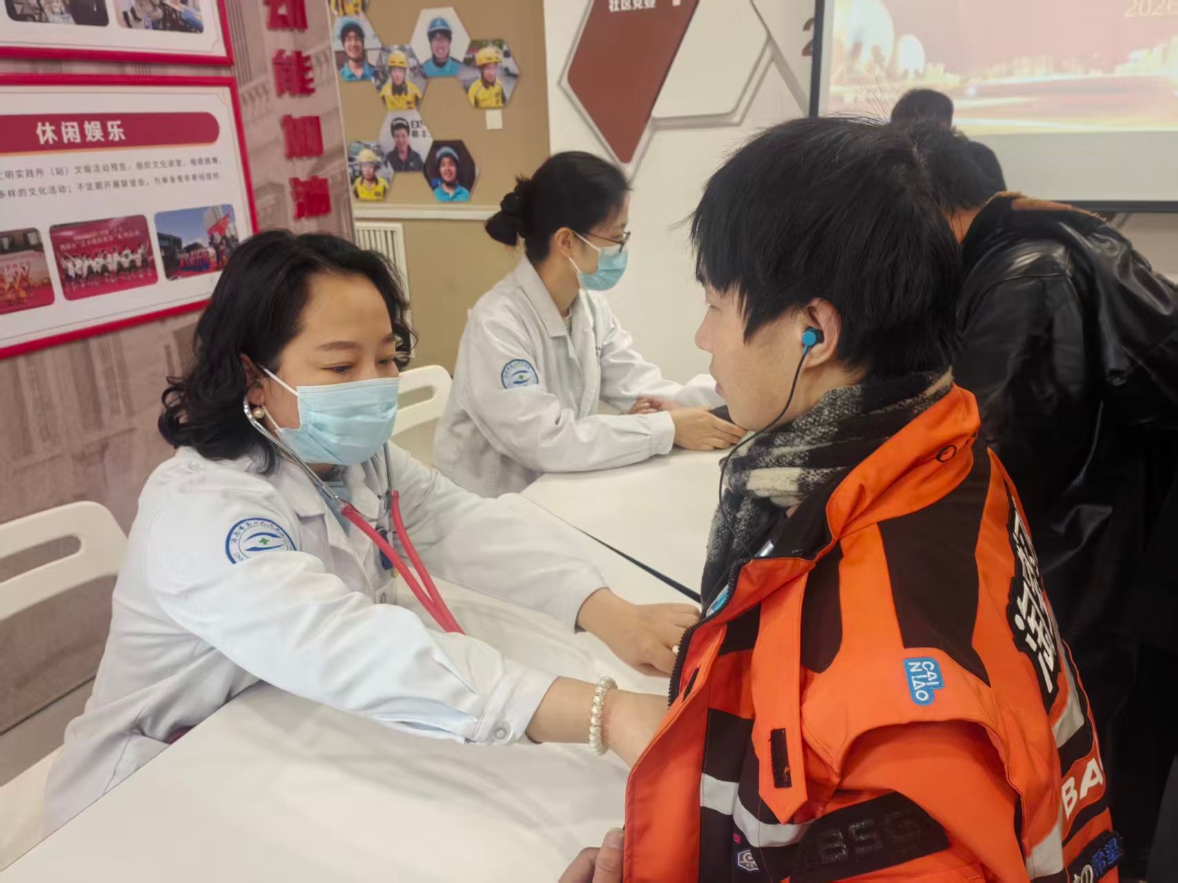 到达社区后,义诊活动迅速拉开帷幕。市眼科医院(市二院)内科、口腔科的医护人员们迅速投入到工作中,为外卖小哥进行了血压、心肺功能、口腔等方面的细致检查。除了专业的检查,医护人员们还为他们提供了健康咨询服务。他们用通俗易懂的语言,普及健康知识,传授日常保健方法,引导大家树立正确的健康观念。一位外卖师傅感慨地说:“这样的义诊活动太贴心了,让我们在寒冷的冬日感受到爱和温暖,太感谢你们了!”