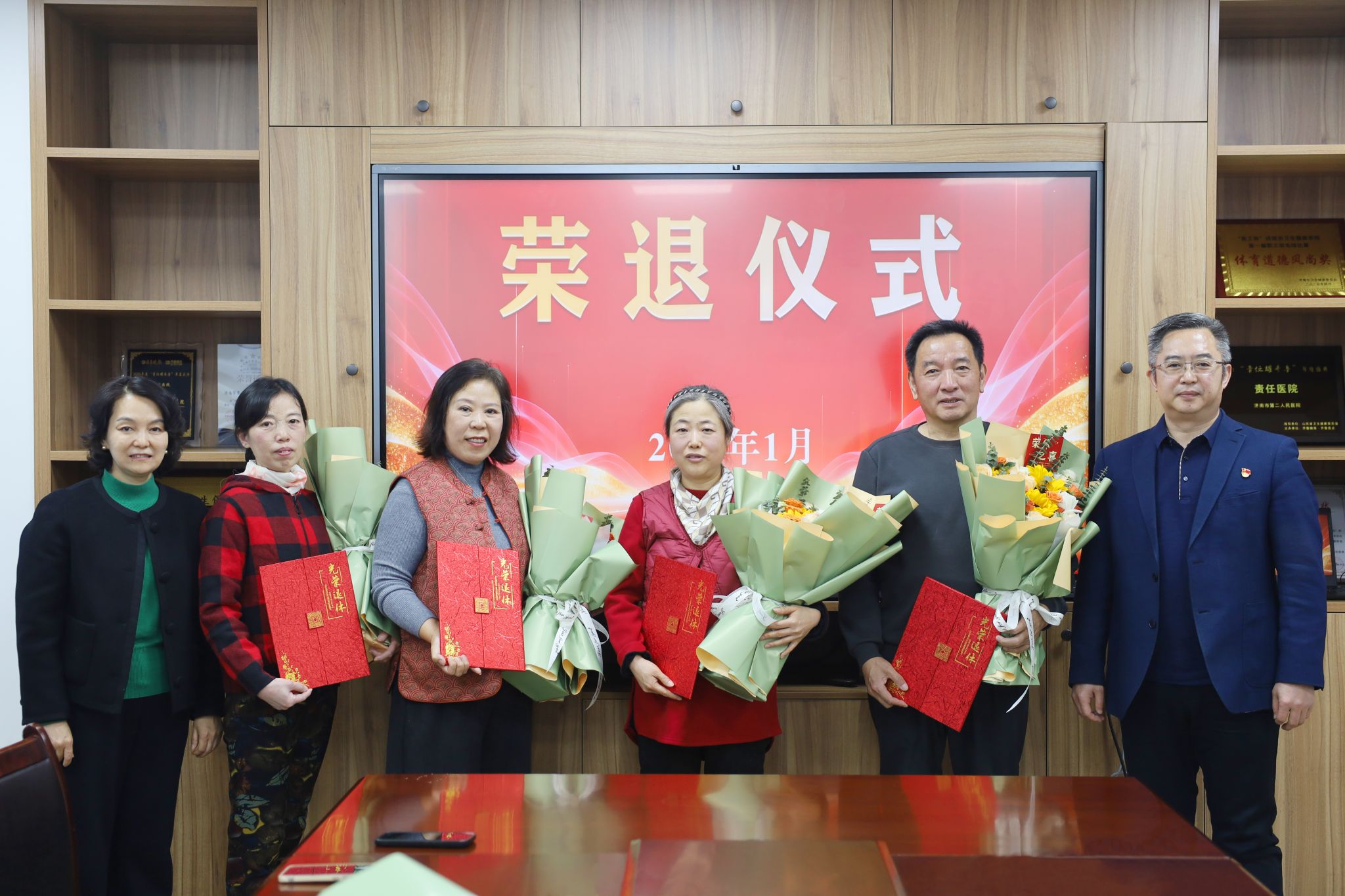荣退仪式在轻松欢快的暖场音乐《常回家看看》中拉开序幕。院领导先后致辞讲话,表达了对退休职工的敬意和祝福,欢迎他们继续关注医院发展,祝愿他们身体健康、生活愉快。