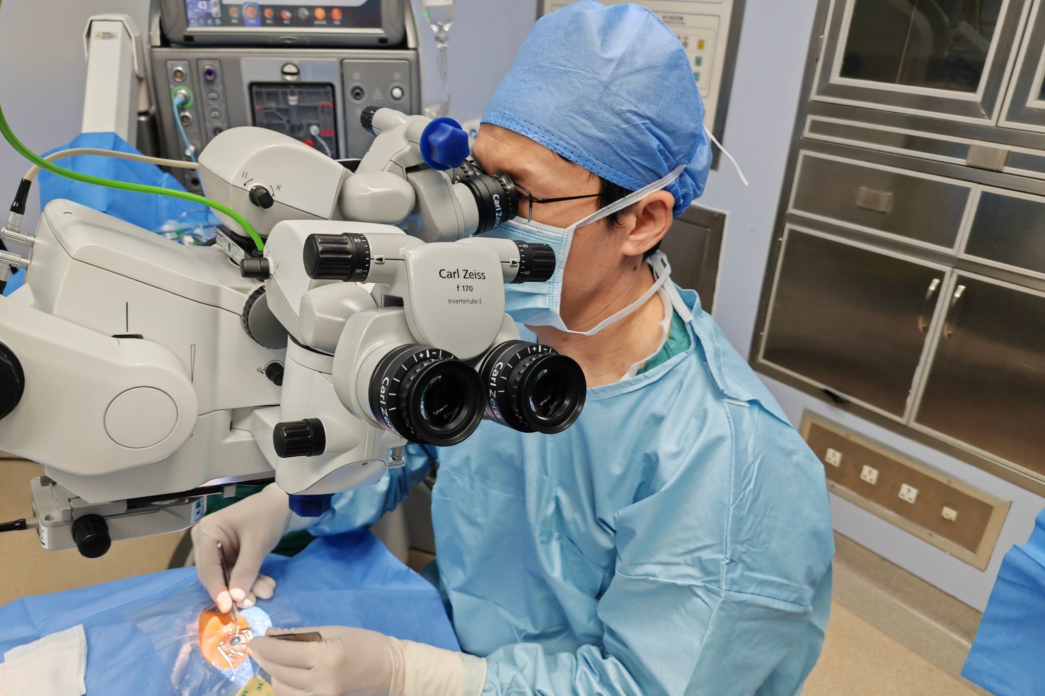 王女士因多年高度近视及长期高血压导致眼底视网膜极其脆弱,于2025年4月左眼突发玻璃体积血,视力骤降至仅能眼前手动,生活严重受影响。面对其复杂的全身状况与高手术风险,眼二科张同河主任迅速组建多学科团队,经全面评估后,为她紧急实施了“左眼后入路玻璃体切割术+眼内激光术+气液交换+硅油注入术”。术中不仅清除了积血、封闭了裂孔,更发现了极为严峻的视网膜下大片出血及陈旧性裂孔,手术团队以精湛技艺尽力处理并稳定了病情,保住了眼球。首次住院,医护团队的专业与沉稳为王女士带来了最初的希望。术后复查时,奇迹般完全吸收的视网膜下出血创造了宝贵契机,张主任果断沟通并迅速安排了第二次高难度联合手术,成功完成了“左眼玻璃体硅油取出+气液交换+白内障超声乳化抽吸+眼内激光+重水注入+硅油注入术”。三个月后,根据恢复情况,张主任团队又精准把握时机,为她顺利实施了第三次手术——“硅油取出+人工晶体二期植入”,以最小创伤实现了结构重建。在整个漫长而复杂的治疗过程中,团队始终以精湛技术、密切监测和细致关怀护航。最终,王女士的视力从绝望的眼前手动显著恢复至裸眼0.2、矫正0.3的理想状态,她激动地感慨重获清晰视界,其心境也从最初的焦虑惶恐化为全然的信赖与感激。