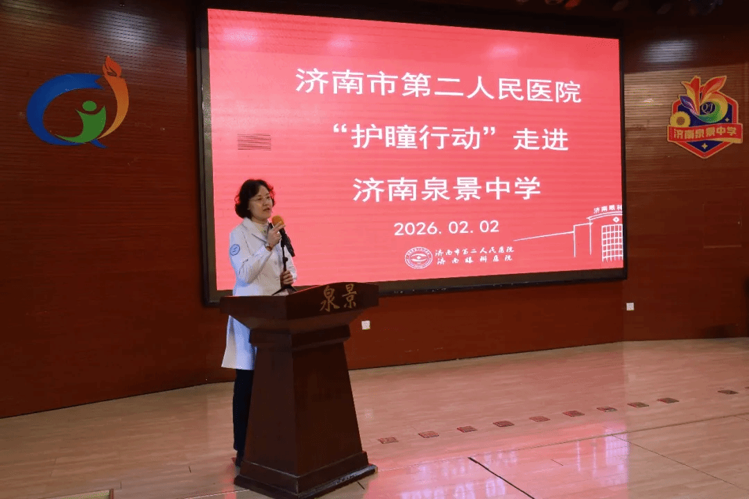 )“护瞳行动”志愿服务队受邀走进济南泉景中学,在2025-2026学年上学期休业典礼上,为全校师生带来了一场干货满满的近视防控健康讲座。
