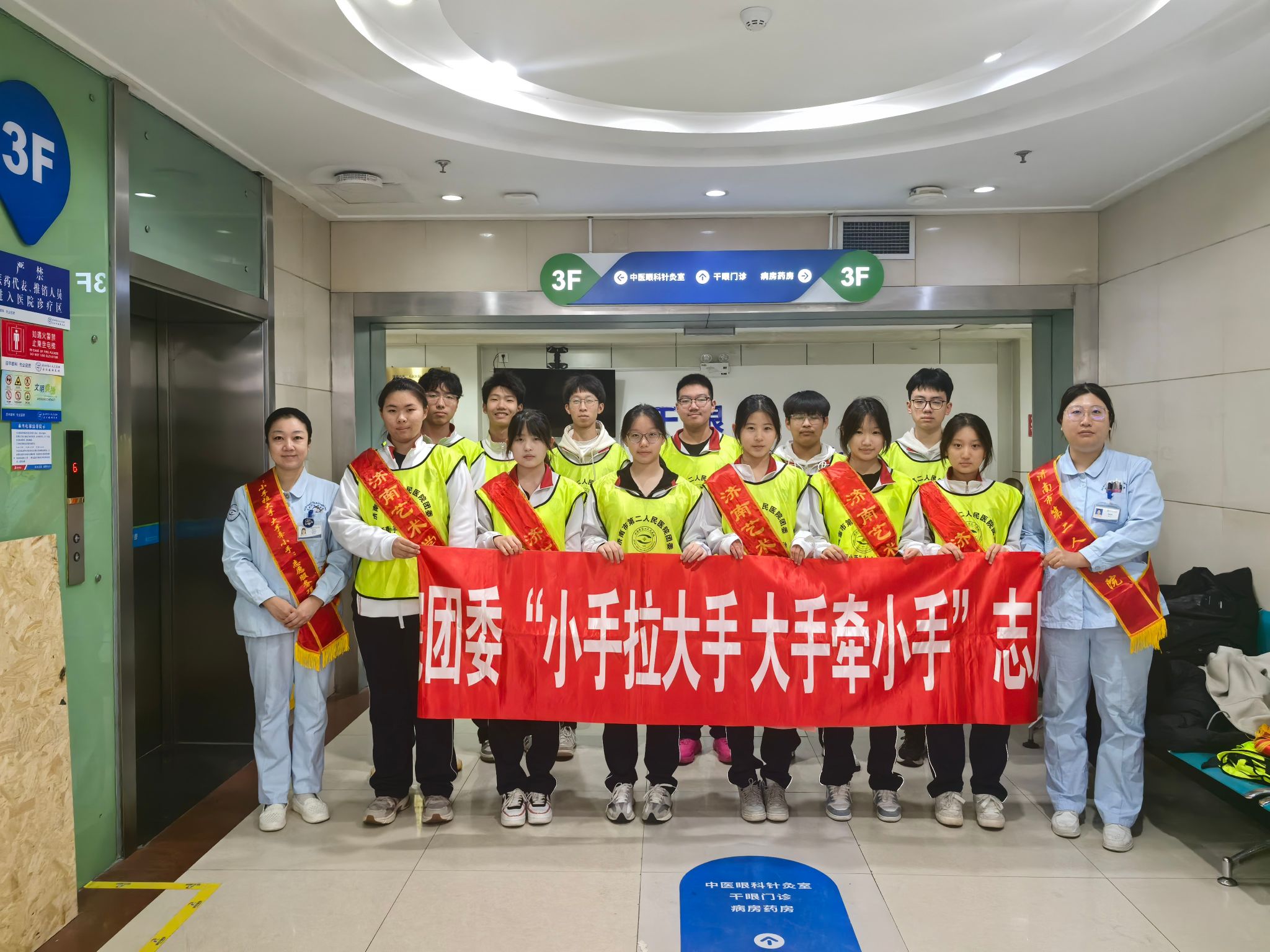 )团委联合济南艺术学校,依托医院“大手牵小手 小手拉大手”志愿服务项目,组织学生志愿者走进干眼门诊、眼科门诊学雷锋志愿服务岗,开展健康科普与门诊便民志愿服务,以实际行动传承雷锋精神,守护群众眼健康。