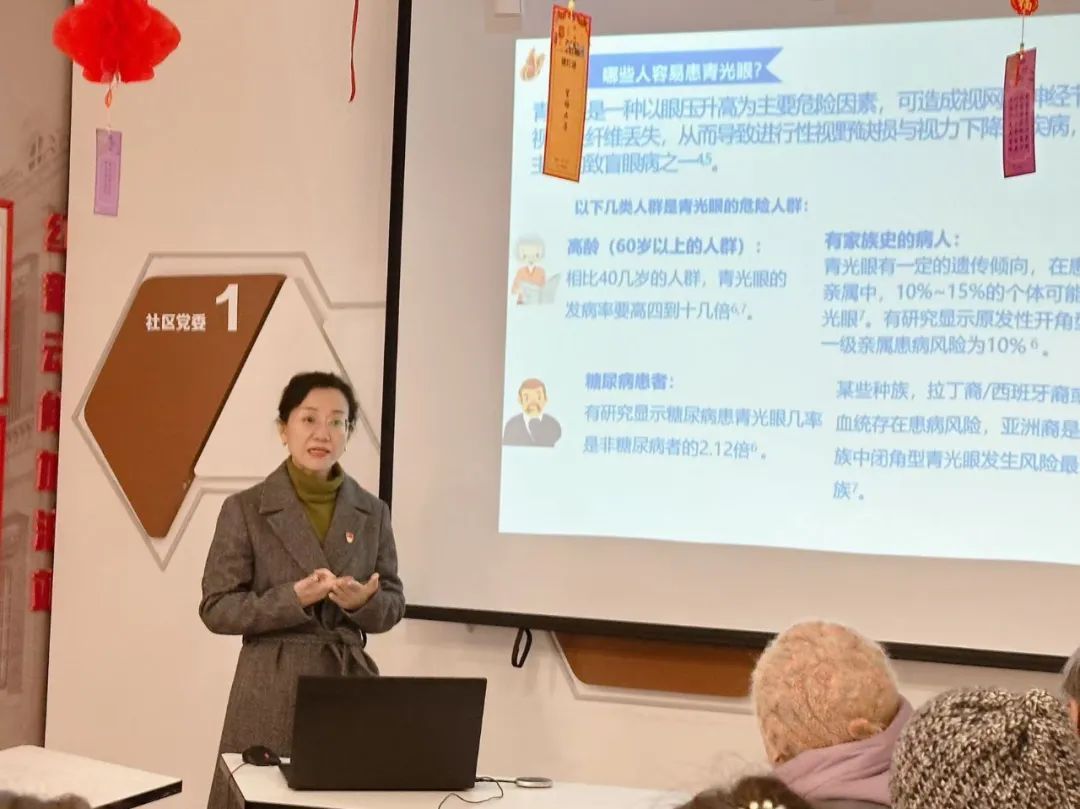 活动中,市眼科医院(市二院)眼科第一党支部书记、主任医师张苗苗作为主讲嘉宾,为社区居民和外卖员骑手们带来了一场关于青光眼知识的专题讲座。张主任用通俗易懂的语言,深入浅出地讲解了青光眼的症状、危害以及预防和治疗的方法,使大家对这个常见的眼部疾病有了更加全面和深入的了解。据张主任介绍,青光眼是一种严重的致盲性眼病,如果不及时发现和治疗,很可能导致视力永久丧失。她提醒大家要定期进行眼科检查,尤其是对于有青光眼家族史或高风险因素的人群,更要加强自我保健意识。