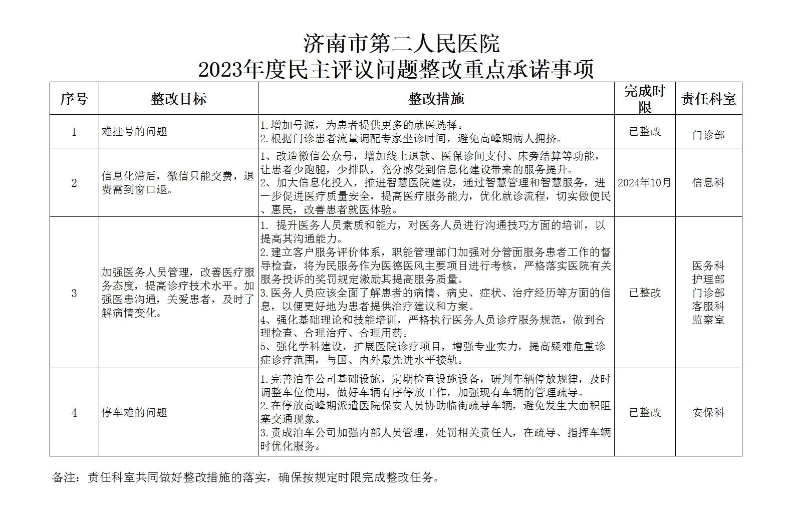 黑料网 2023年度民主评议问题整改重点承诺事项