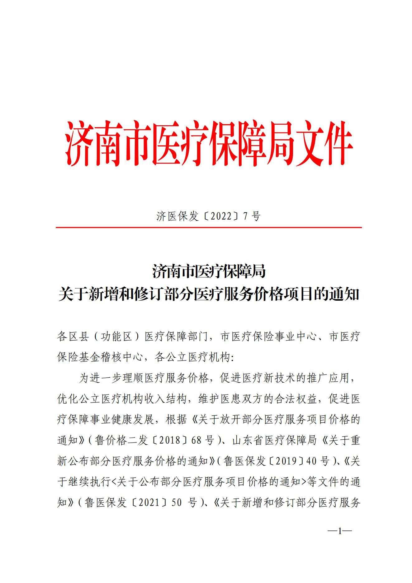 济南市医疗保障局关于新增和修订部分医疗服务价格项目的通知