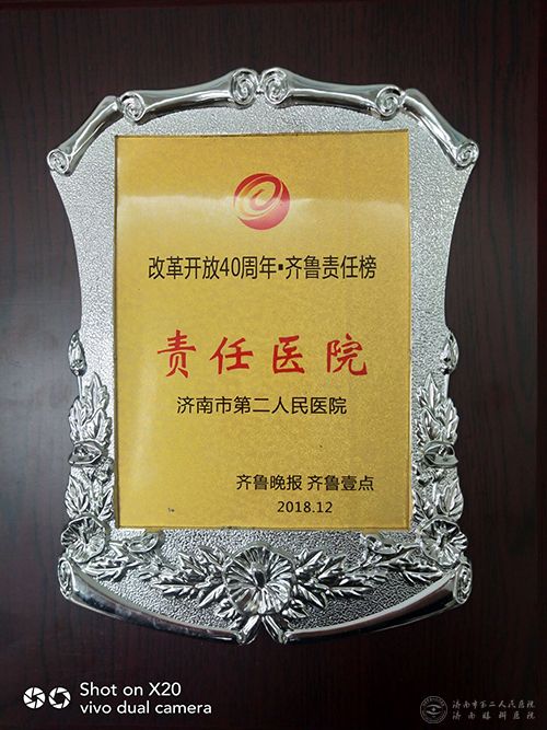 济南市二院荣获“改革开放40周年? 齐鲁责任榜责任医院”荣誉称号