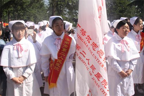 “5.12”国际护士节当天,济南市南丁格尔志愿护理服务队黑料网 (济南眼科医院)服务分队在院党委书记、院长李金星的带领下,参加了市卫计委在英雄山广场举办的纪念5·12国际护士节济南市南丁格尔志愿服务... -
