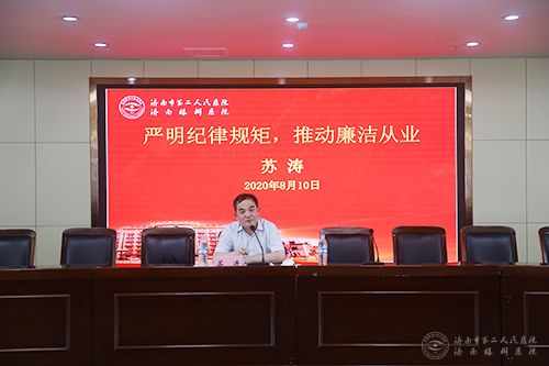 8月10日下午,市二院组织了中层干部、护士长调整任职以来组织的系列培训月活动之一---廉政警示教育培训,邀请市委巡察一组组长苏涛作专题培训。院领导班子成员、科主任、护士长、党支部委员、财务科、药学部、设备科... -