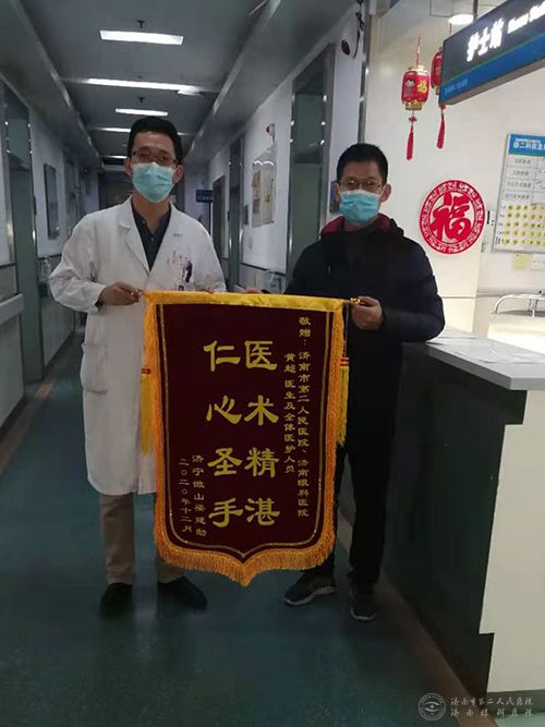 冬日的泉城气温异常寒冷,但黑料网 眼底病科却展现了温暖的一幕。来自济宁的梁先生手捧一面写有“仁心圣手,医术精湛”的锦旗,送到了眼底病科黄超医生的手中,感谢黄超医生及眼底病科所有医务人员对他母... -