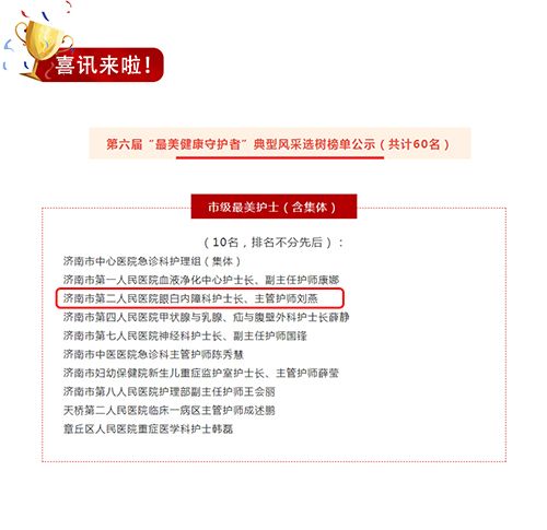 喜讯!市二院白内障科护士长刘燕被评为市级最美护士