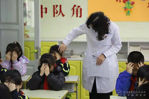 市二院“护瞳行动”志愿服务团队专家指导济南市育晖小学眼保健操比赛