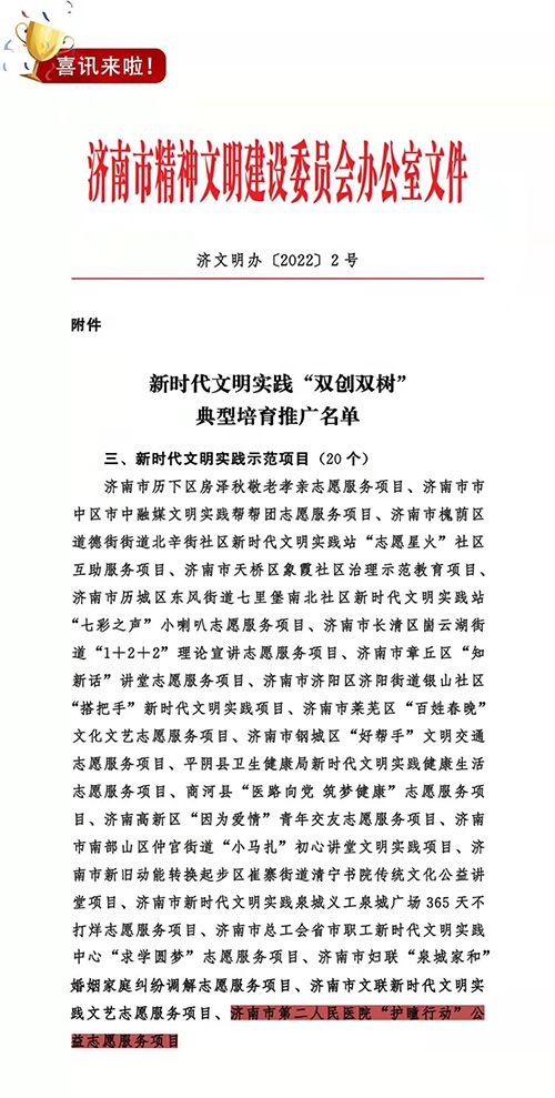 市二院“护瞳行动”获评济南市文明实践示范项目