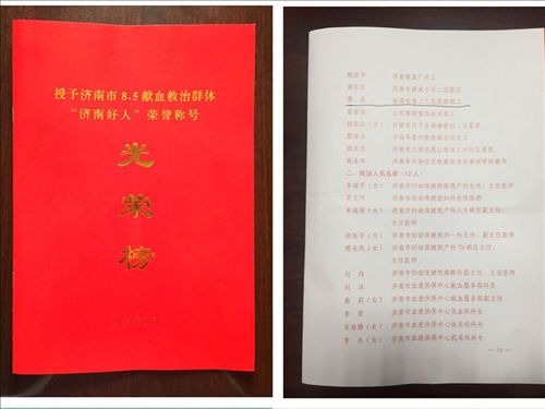 市二院职工谭泉被授予济南市8.5献血救治群体 “济南好人”荣誉称号
