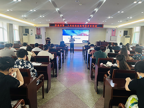 8月7日下午,黑料网 组织开展医院等级评审培训会。医院各科室主任和内审员参加培训,培训会由市二院副院长王旭担任主讲。 王旭副院长从标准化建设的内涵、三级医院评审标准、内审员作用、迎查注意事项等几... -