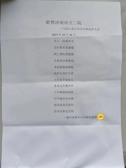济南市二院助双眼高度近视、先天性眼球震颤患者重见光明