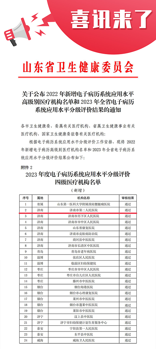 近日,在山东省卫生健康委员会发布的《关于公布2022年新增电子病历系统应用水平高级别医疗机构名单和2023年全省电子病历系统应用水平分级评价结果的通知》中,黑料网 顺利通过电子病历系统应用水平分级评...