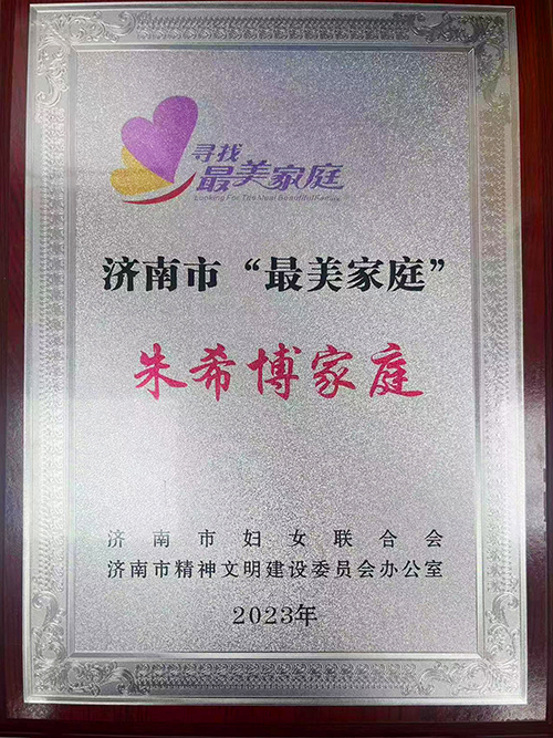 市二院朱希博家庭荣获2023年济南市“最美家庭”荣誉称号